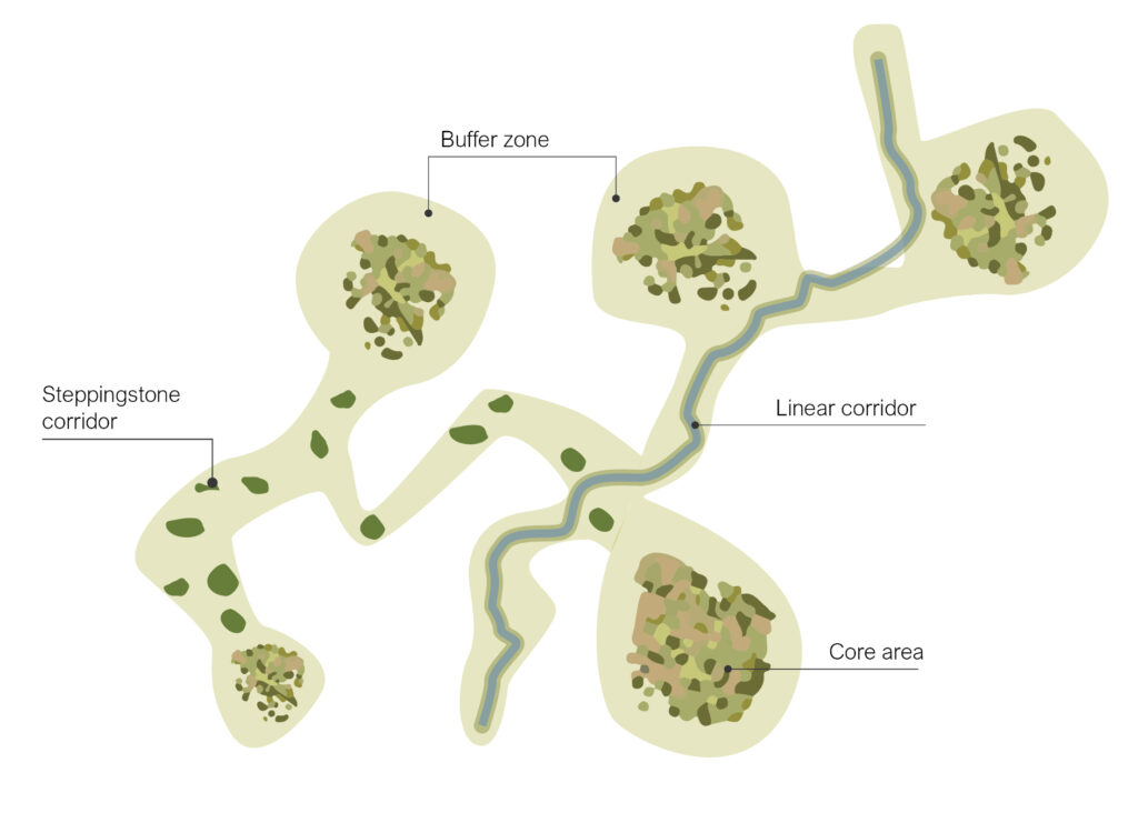 De belangrijkste componenten in een ecologisch netwerk zijn: