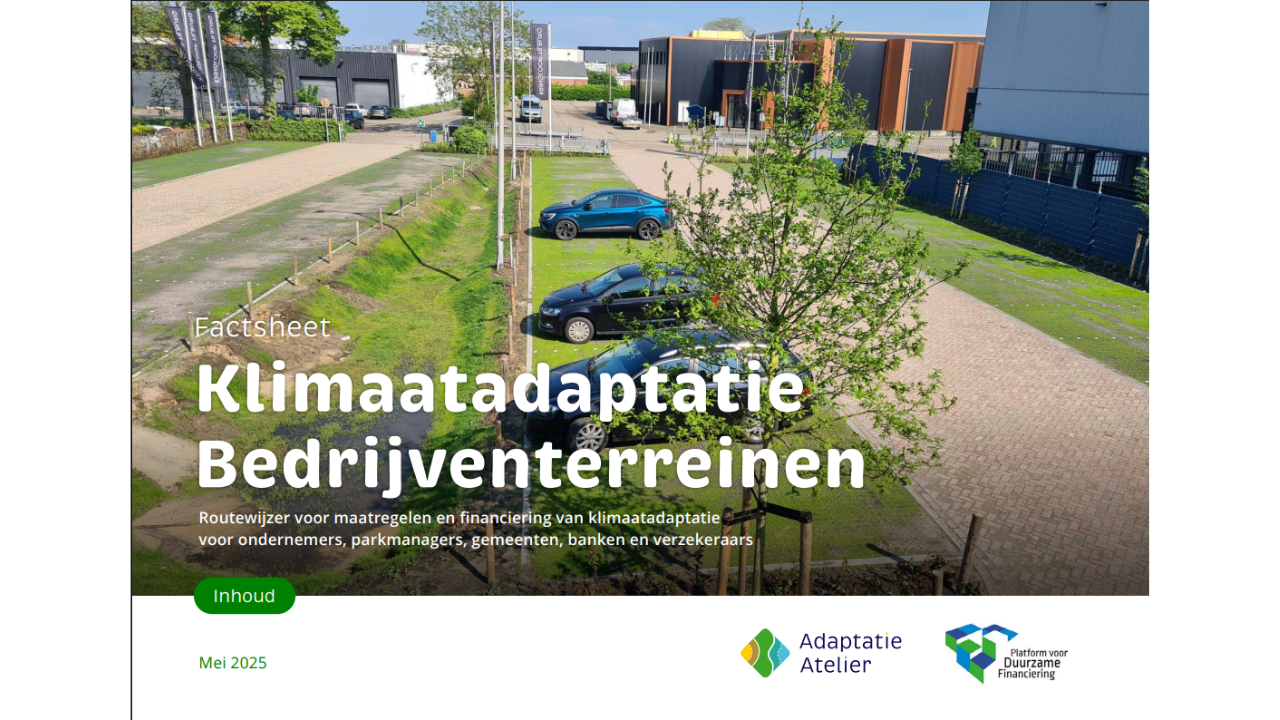 Door stichting Adaptatie Atelier en de Werkgroep Klimaatadaptatie van het Platform voor Duurzame Financiering